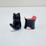 Count Dracula cat ceramic figurine is made of low fire earthen clay and Duncan underglaze for ceramic. In order to achieve the final looking pieces, I put a lot of time and care into sculpting, glazing, and firing my pieces at the right temperature. Delicate 22k gold details are painted by hand in these pieces for elegant and shiny looking. Please handle them with care.