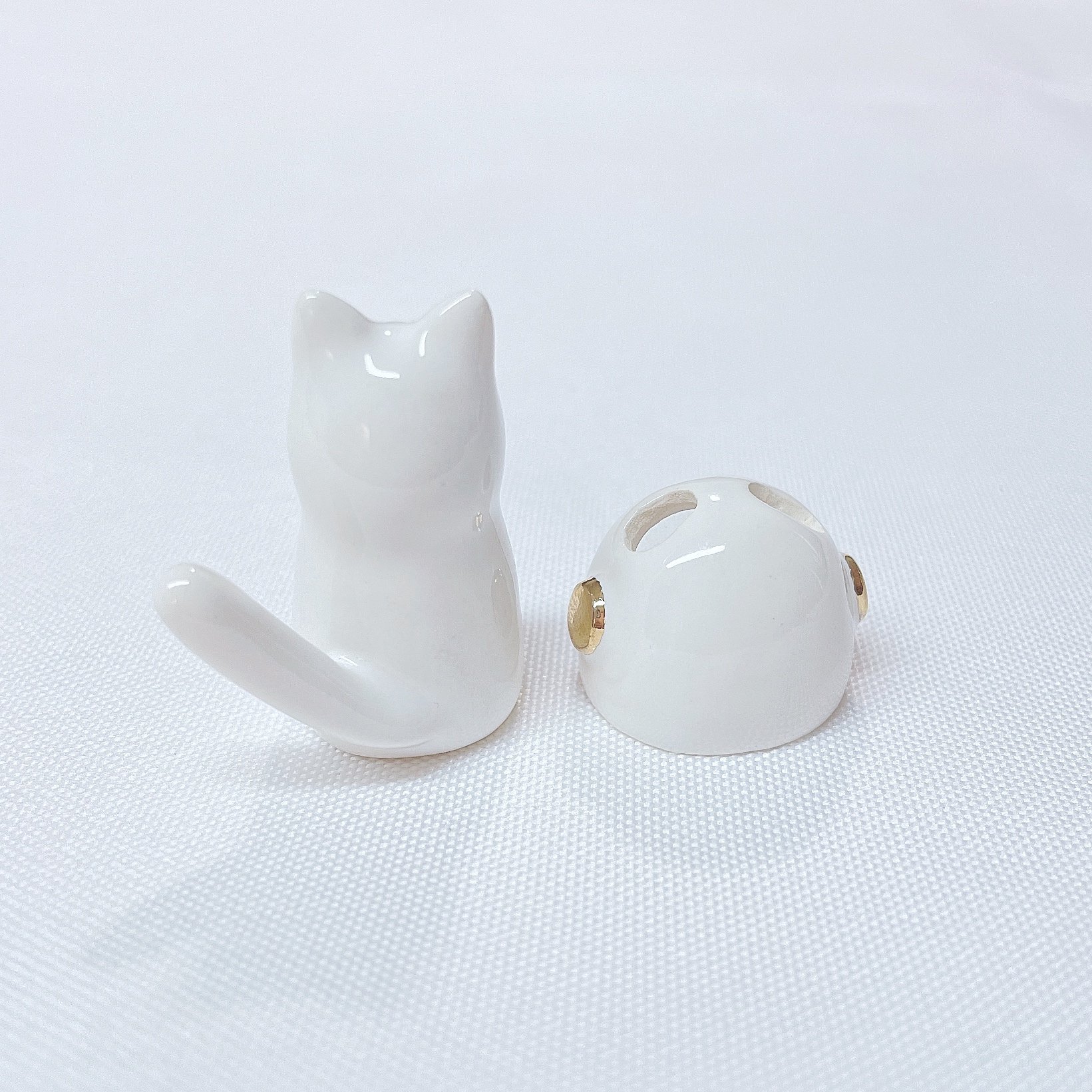 White cat with astronaut helmet ceramic figurine is made of low fire earthen clay and Duncan underglaze for ceramic. In order to achieve the final looking pieces, I put a lot of time and care into sculpting, glazing, and firing my pieces at the right temperature. Delicate 22k gold details are painted by hand in these pieces for elegant and shiny looking. Please handle them with care.