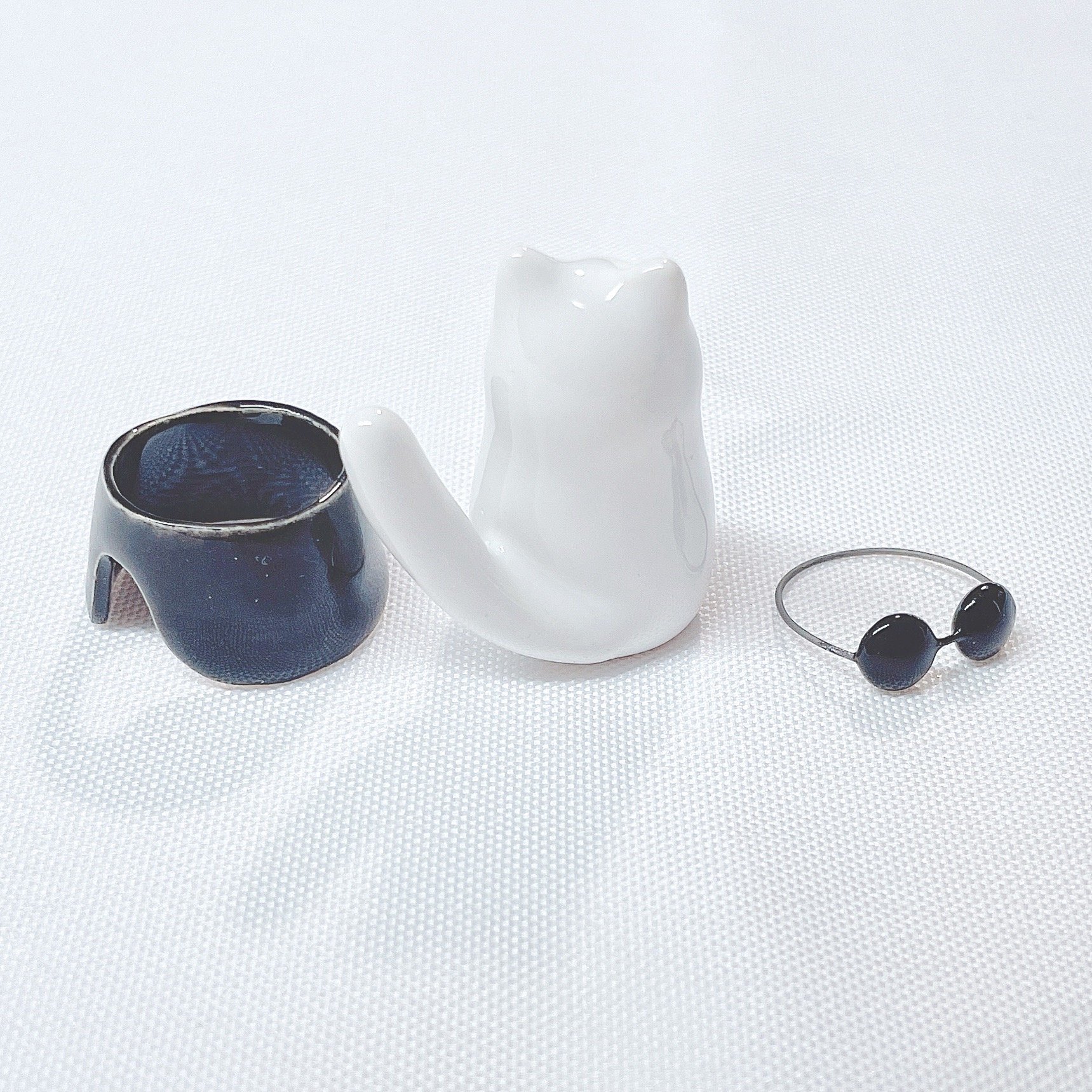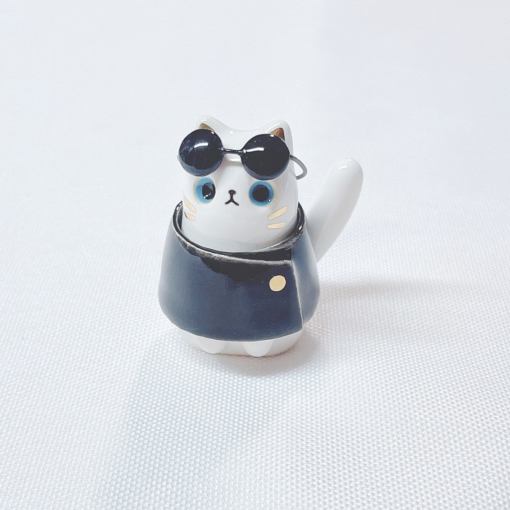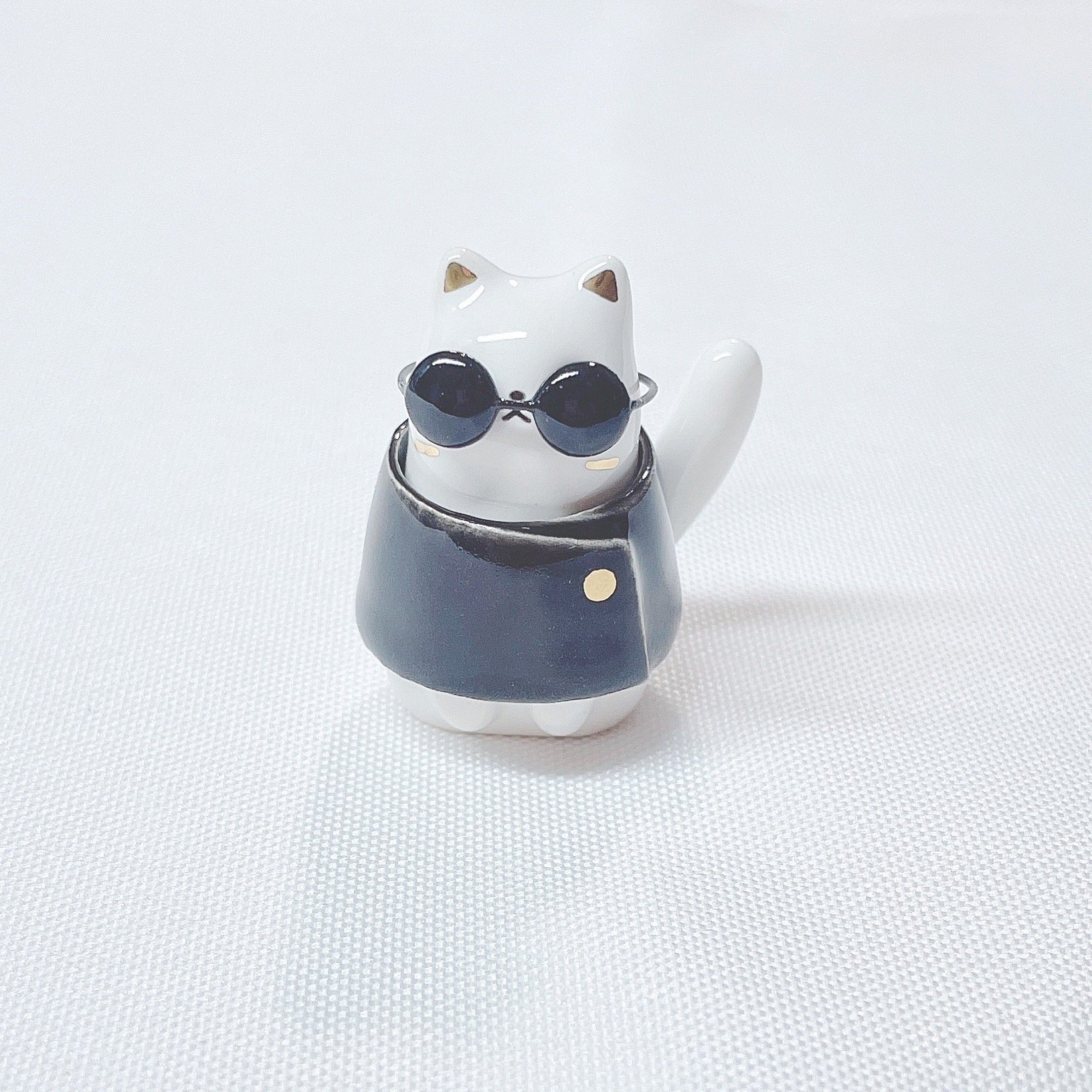 GLASSES ARE FRAGILE PLEASE HANDLE THEM WITH EXTRA CARE. White cat with Gojo outfit ceramic figurine is made of low fire earthen clay and Duncan underglaze for ceramic. In order to achieve the final looking pieces, I put a lot of time and care into sculpting, glazing, and firing my pieces at the right temperature. Delicate 22k gold details are painted by hand in these pieces for elegant and shiny looking. Please handle them with care.