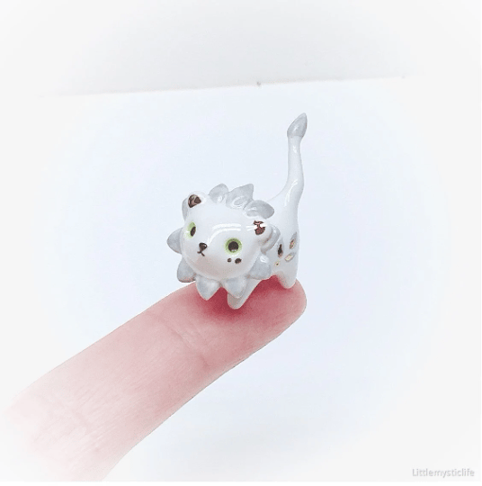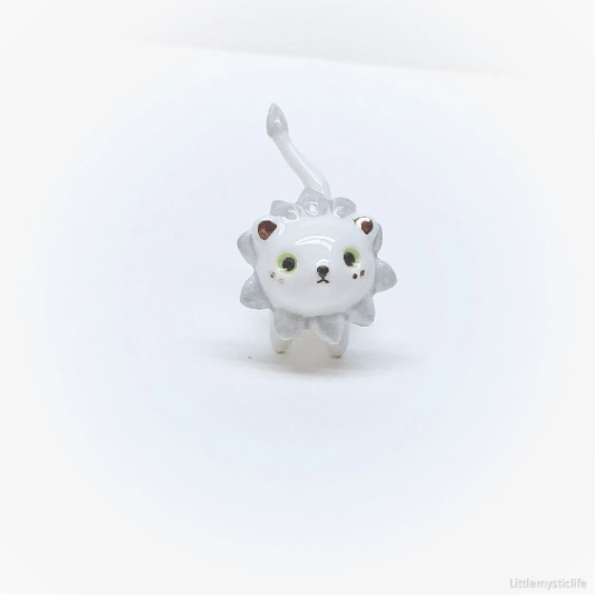 Lion ceramic figurine is made of low fire earthen clay and Duncan underglaze for ceramic. In order to achieve the final looking pieces, I put a lot of time and care into sculpting, glazing, and firing my pieces at the right temperature. Delicate 22k gold details are painted by hand in these pieces for elegant and shiny looking. All my pieces are very small (about as big as your thumb), please handle them with care.